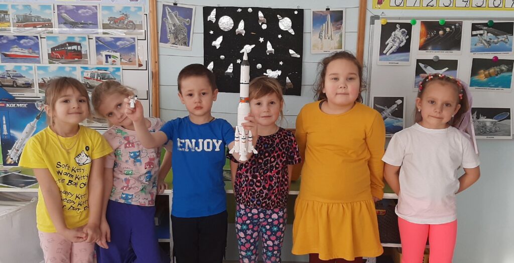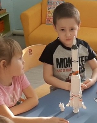 В старшей группе «Медвежата»завершилась тема недели «Транспорт «. Итоговой работой стало коллективная сборка ракеты из лего — конструктора, под руководством учителя -логопеда и воспитателя . Воспитанники с удовольствием побеседовали на космическую тематику, вспомнили знаменитых космонавтов, названия планет Солнечной системы, поговорили о космических кораблях.