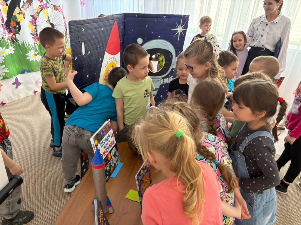 В преддверии праздника — Дня космонавтики, в рамках областной акции «Читаем о Юрии Гагарине», наш детский сад посетила Центральная районная детская библиотека. Тема космоса также необъятна, как само мироздание. Как рассказать ребенку о бесконечности, о строении планет и звездных систем. С чего начать? Библиотекари Щеблютова Наталья Юрьевна и Меркулова Елена Сергеевна не только нашли нужные слова, но и смогли показали ребятам, как все это выглядит. Вниманию ребят была представлена интереснейшая презентация о космосе, книги для детей о космонавтах, а также была организована мини выставка с «космическими» экспонатами. Внимательно посмотрев и послушав важную и интересную информацию, воспитанники отвечали на вопросы и задавали свои! А еще ребята смогли сами побывать немного космонавтами, примерить на себя скафандр, увидеть метеорит и потрогать ракету. Наталья Юрьевна и Елена Сергеевна организовали фото зону, где детки с удовольствием по фотографировались. Получилась очень познавательная и интересная встреч.