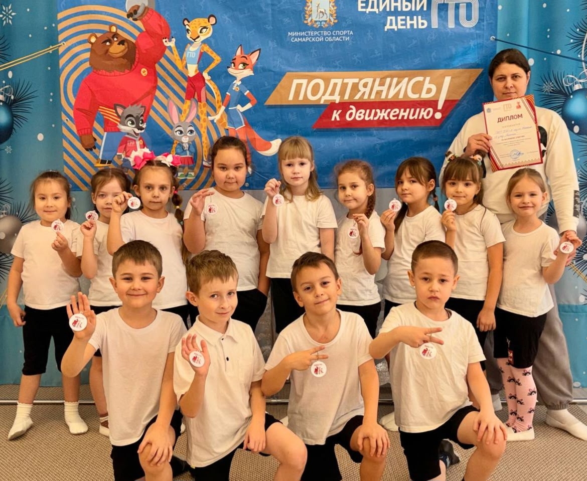 Воспитанники детского сада «Теремок», участники областной акции по пропаганде физической культуры, спорта и здорового образа жизни «Единый день ГТО» в 2025 году среди дошкольных учреждений, были награждены сувенирной продукцией с символикой ГТО, банером ГТО и дипломом Министерства Спорта Самарской области за активное участие.
