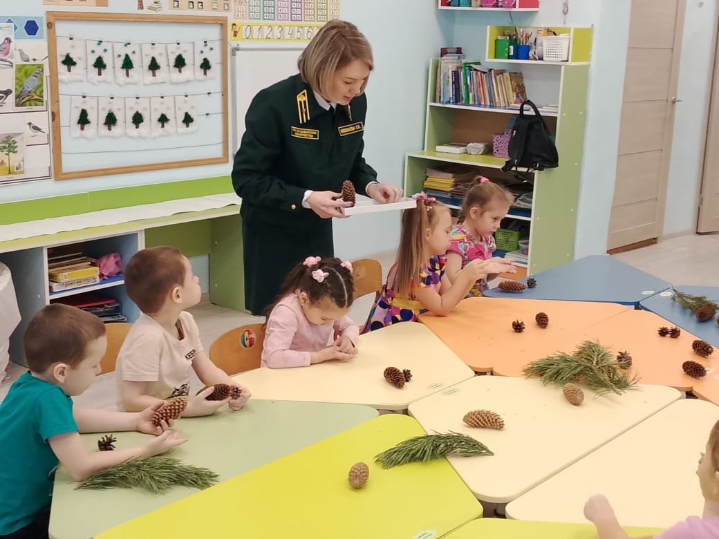21 января, в рамках акции «Елочка, живи!», в группе компенсирующей направленности «Медвежата» детского сада «Теремок», прошло познавательные мероприятие «Не рубите елочки!». А главным гостем этого события стала Николаева Татьяна Николаевна, мастер леса Шенталинского лесничества ГКУ СО «Самарские лесничества». Она очень подробно и увлекательно поведала ребятам о том, как и где растут елочки. Сколько труда необходимо человеку, чтобы вырастить это деревце. Так же она рассказала о видах хвойных деревьев и об их неоценимой пользе для людей. А ещё, Татьяна Николаевна принесла с собой живые веточки ели и сосны, шишечки разных возрастов и ребята с большим интересом смогли сами рассмотреть, потрогать и даже понюхать их. Еще они научились определять какая шишка от какого дерева и сколько ей лет. Наши детки гр.»Медвежата» тоже готовились к этому мероприятию. Они выучили и рассказали стихи с призывом не рубить елочки, а беречь их красоту! А еще они изготовили замечательные яркие «поделки-елки» своими руками. Мероприятие получилось очень насыщенным, познавательным и интересным. Сотрудничество с Шенталинским лесничеством, конечно же, считаю важным и необходимым для дошкольников, таким образом мы формируем у детей ответственное отношение к лесным богатствам родного края. Привлекаем внимание детей к экологическим проблемам, а так же обогащаем экологические знания через расширение представлений о хвойных деревьях.