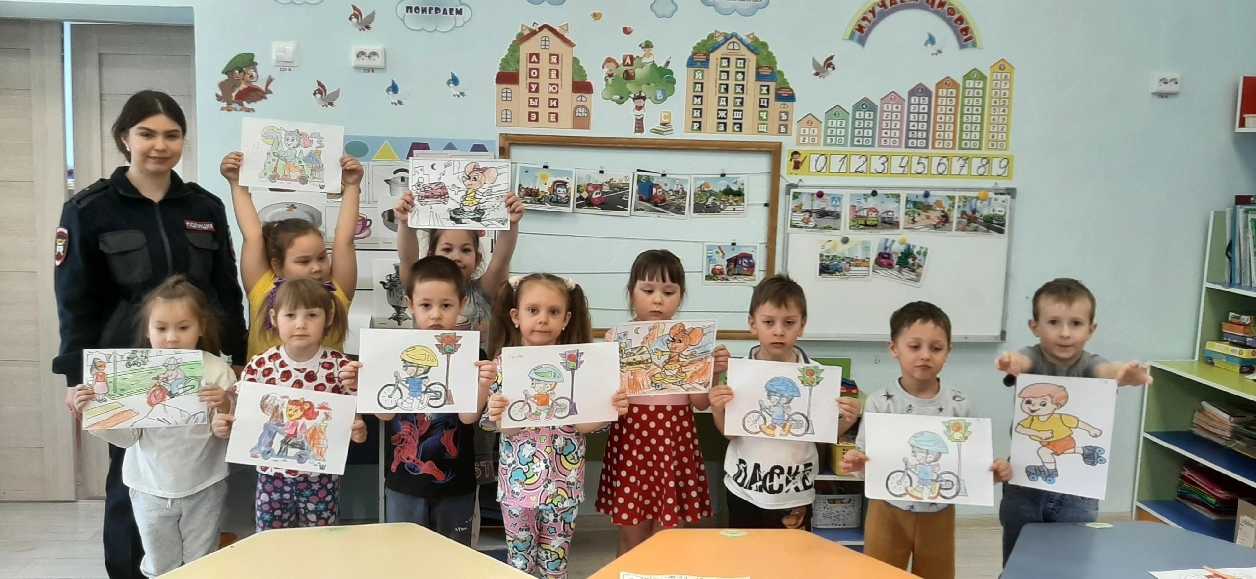 ЮПИД приходил инспектор по пропаганде безопасности дорожного движения отделения Госавтоинспекции О МВД России по Шенталинскому району, Валиуллина С.И. . Для ребят она провела познавательную беседу, рассказала о дорожных знаках, безопасной езде на самокате и велосипеде .И правилах безопасного поведения на дорогах.В конце дети раскрасили раскраски!